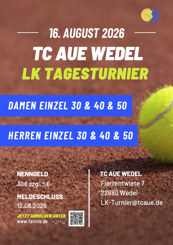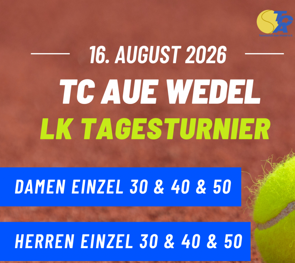 Nach den erfolgreichen Doppel- und Mixed-LK-Turnieren der letzten Jahre findet unser diesjähriges LK-Tagesturnier am 16.8.2026 mit Einzelkonkurrenzen Damen und Herren in den Altersklassen 30, 40 sowie 50 statt.